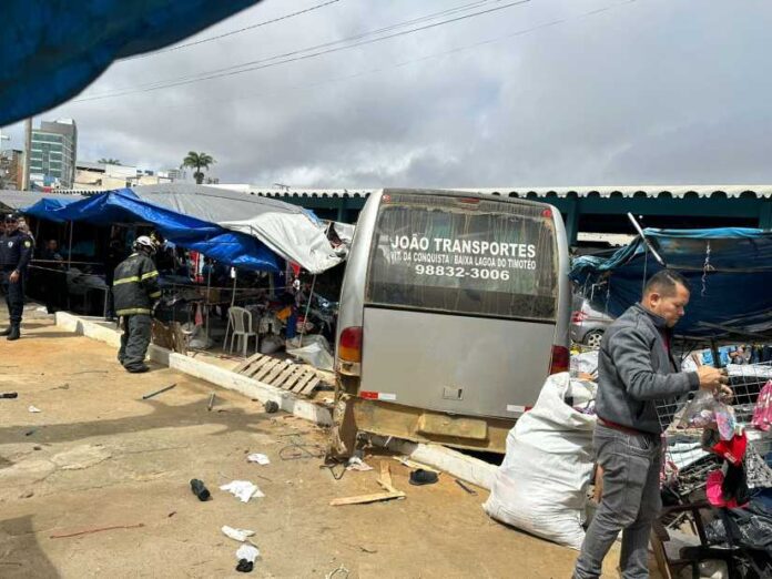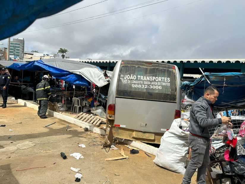 Um grave acidente foi registrado no Ceasa, no Centro de Vitória da Conquista, na manhã desta quarta-feira (09), após um micro ônibus perder o controle e invadir a calçada onde ficam as barracas de roupas.