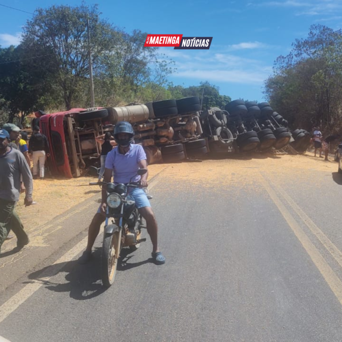 Uma carreta carregada de milho perdeu o controle e tombou na tarde dessa quinta-feira na BR-030 entre as cidades de Caetité e Brumado.