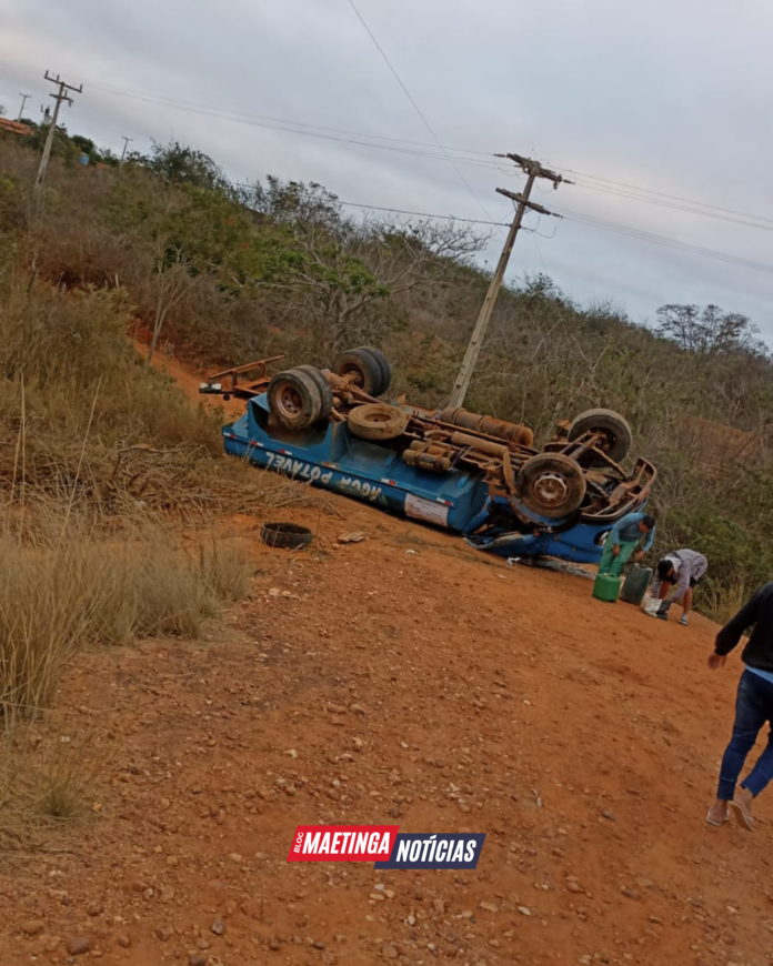 Um caminhão-pipa capotou hoje pela manhã, próximo a chegada da cidade de Maetinga na região da Fazenda Pedra.