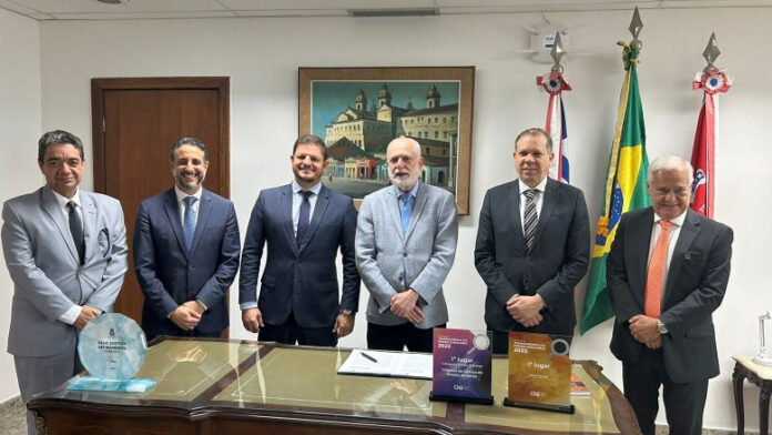 Assinatura ocorreu em encontro entre o presidente da UPB, prefeito Quinho de Belo Campo, e o presidente do TJ-BA, desembargador Nilson Castelo Branco.