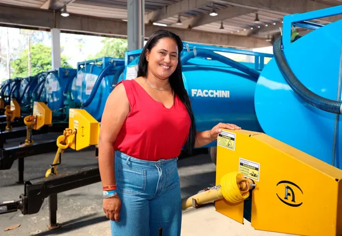 Nesta quinta-feira (19/10), o Governo do Estado, por meio da Companhia de Desenvolvimento e Ação Regional (CAR), empresa pública vinculada à Secretaria de Desenvolvimento Rural (SDR), entregou 94 veículos tipo carreta pipa para prefeituras e organizações produtivas da agricultura familiar, com um investimento superior a R$ 4 milhões, oriundos de emendas parlamentares. Essas carretas pipas servirão para melhorar as condições de irrigação nas plantações, no abastecimento de água e para auxiliar na limpeza das estradas vicinais.