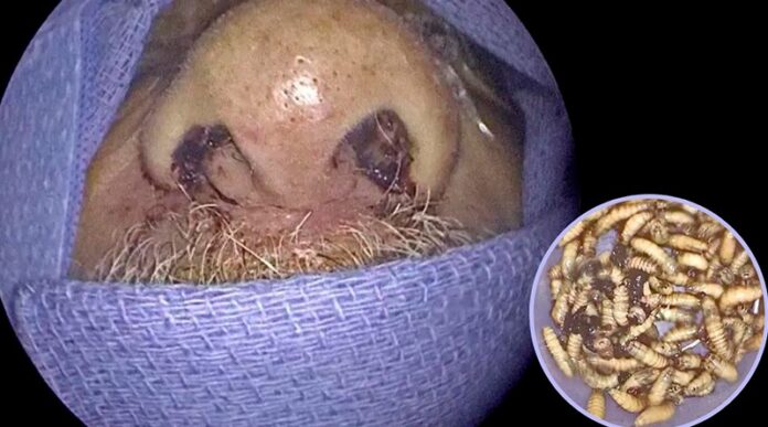 David Carlson, o médico que atendeu o homem, contou ao canal que, ao examinar o nariz do paciente com uma câmera, notou várias larvas se alimentando no interior do nariz e na cavidade nasal e liberando tecidos e excrementos, o que estimulou a inflamação.
