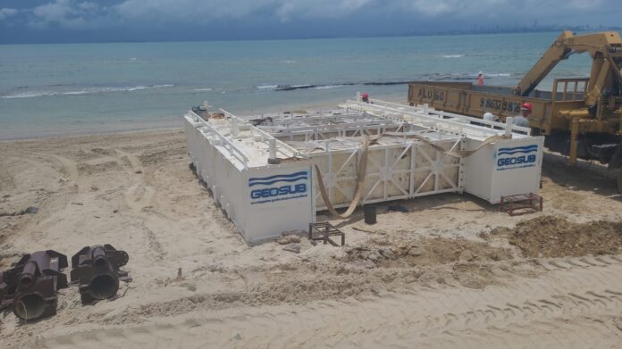 Uma plataforma que está sendo montada na beira do mar no município de Vera Cruz, na Ilha de Itaparica, vai ser utilizada nos próximos dias na atividade de sondagem da Ponte Salvador-Itaparica.