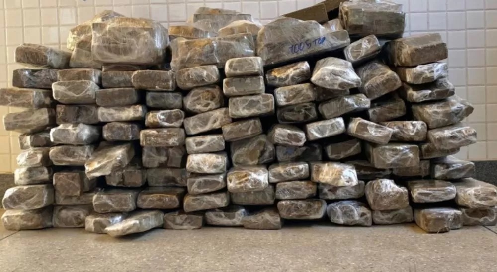 Dentro do veículo, foram encontradas mochilas contendo 95 tabletes de uma substância análoga à maconha, totalizando aproximadamente 100 quilos.