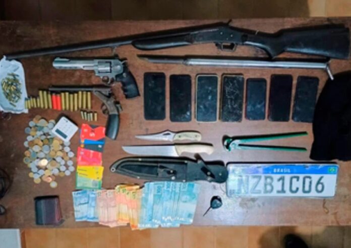 Durante a abordagem, um dos suspeitos fugiu, mas os demais foram capturados. Com eles, foram encontradas diversas armas de fogo, munições, dinheiro, celulares e um veículo Toyota Corolla, além de outras evidências relacionadas ao crime.
